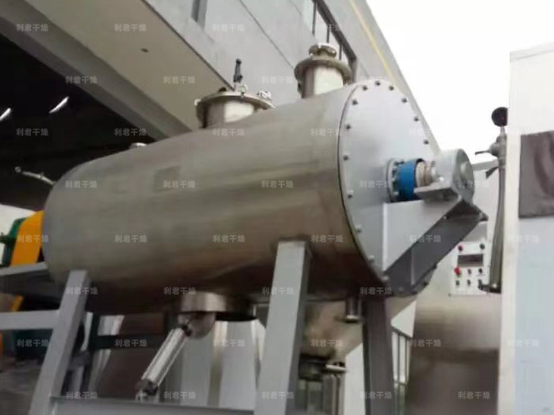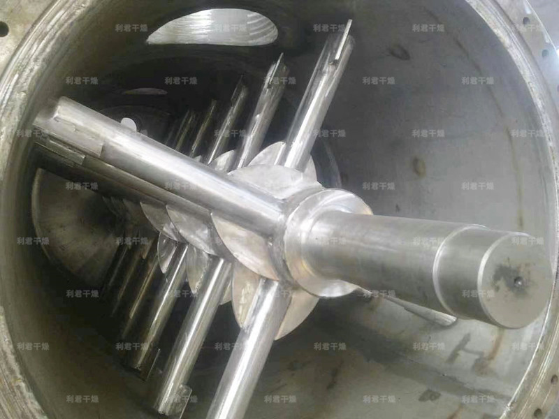 本機(jī)是一種新穎臥式間歇式真空干燥設(shè)備,濕物料經(jīng)傳導(dǎo)蒸發(fā),帶有刮板攪拌器不斷清除熱面上的物料,并在容器內(nèi)推移形成循環(huán)流,水份蒸發(fā)后由真空泵抽出。