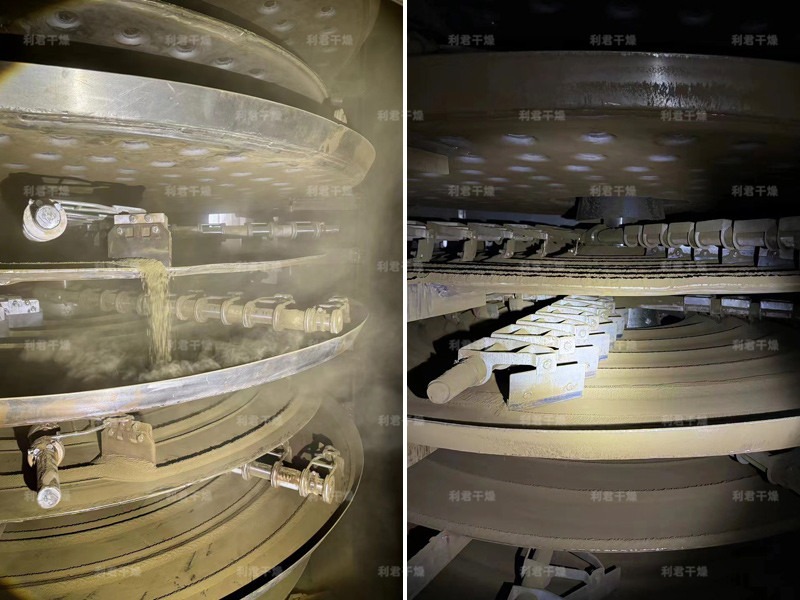 ◎通過(guò)調(diào)整料層厚度、主軸轉(zhuǎn)速、耙臂數(shù)量、耙葉型式和尺寸使干燥過(guò)程達(dá)到最佳。