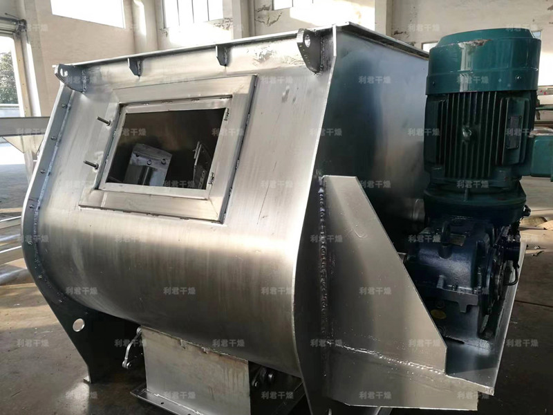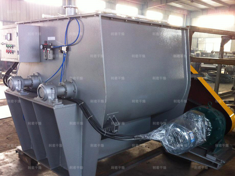 本系列混合機(jī)以強(qiáng)烈、高效混合為特點(diǎn)、臥式筒體內(nèi)兩根攪拌等速反向旋轉(zhuǎn),上特殊布置的槳葉確保物料徑向、環(huán)向、軸向三向運(yùn)動(dòng),形成復(fù)合循環(huán),在極短的時(shí)間內(nèi)達(dá)到均勻混合。