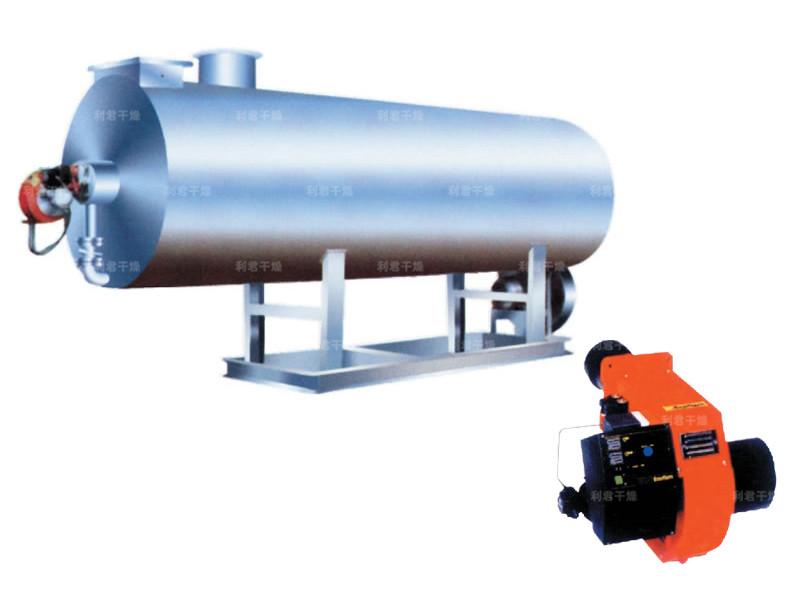 燃料通過燃燒器燃燒,產(chǎn)生高溫燃氣。并借助具有強化換熱措施的熱風爐將高溫燃氣的熱量傳導給被加熱的空氣,高溫燃氣經(jīng)熱量散發(fā)后溫度降低至250℃后排到大氣中。需加熱的空氣通過選配的鼓風機強送入熱風爐,吸熱后溫度升至額定值從熱風出口處送出,當熱風溫度達到額定溫度上限時,燃燒器會自動停止燃燒或自動轉(zhuǎn)為小火焰燃燒,當熱風溫度降低到額定下限溫度時,燃燒器又會重新點燃運行或轉(zhuǎn)為大火燃燒,升溫的速度可以調(diào)節(jié)進風閥的開度來實現(xiàn)。