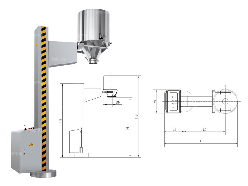 ??TJG 系列固定提升加料機(jī)由兩部分組成,即提升機(jī)及底座。提升機(jī)由機(jī)架、液壓提升系統(tǒng)及料門翻轉(zhuǎn)機(jī)構(gòu)組成。工作時,先將提升機(jī)的料門與料桶扣合,啟動提升操作桿,料門與料桶一起上升,啟動翻轉(zhuǎn)操作桿,料桶即可番轉(zhuǎn)180度,呈底桶向上姿態(tài)并移動到所需位置,利用料門上出料蝶閥,可很容易將物料加入所需的工藝設(shè)備中。